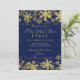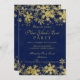 Convite Festa de Ano Novo Dourado & Azul Marinho Flocos de