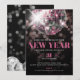 Convite para a Festa de Celebração de Ano Novo do Black Pink. Este convite de festa sofisticado apresenta uma ousada bola de discoteca prateada acentuada com destaques suaves em rosa no topo, com bolas de discoteca menores coordenadas ao longo da parte inferior para um toque divertido e festivo. O fundo preto cria um contraste limpo contra a mistura de fontes serifadas rosa e branco, dando ao layout um clima alegre e elegante. Todas as cores - incluindo o fundo, as fontes e os destaques da bola de discoteca - podem ser personalizadas para se adequar à sua celebração. Uma ótima escolha para uma festa de Ano Novo, uma contagem regressiva para a meia-noite ou uma animada festa de dança com amigos.