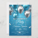 Convite Festa de Aposentadoria com Balões Azuis e Prateado