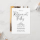 Este convite de festa de aposentadoria com roteiro elegante em preto e branco pode ser personalizado com todas as informações da sua celebração especial e foto no verso. Criado por Thisisnotme©