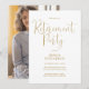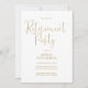 Este convite de festa de aposentadoria com script elegante em ouro pode ser personalizado com todas as informações da sua celebração especial e foto no verso. Criado por Thisisnotme©