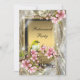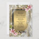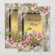 Convites de festa de aposentadoria de mulher com lindas flores de cerejeira rosa e passarinho dourado em um fundo elegante de brilho de diamante. Você pode personalizar facilmente a frente e o verso deste convite de festa de aposentadoria rosa e dourado com sua escolha de estilo de letra, cor e texto. Este é um design impresso sem pedras preciosas, lantejoulas, etc.