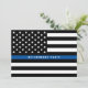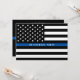Convide seus convidados em estilo para a festa de aposentadoria do policial com este cartão de convite elegante. Este design apresenta uma fina linha azul de bandeira americana sobre fundo preto. Na linha azul, em tipografia branca, lê-se "Partido da Reforma" A parte de trás do cartão de convite tem um fundo preto e uma linha azul fina na parte central, destacando o nome do oficial. Personalize todos os detalhes do seu partido para atender às suas necessidades.