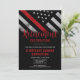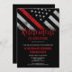 Este design apresenta uma bandeira de bombeiro com listras pretas e brancas e uma fina faixa vermelha também. "Celebração de aposentadoria" fica acima de todos os detalhes partidários para o bombeiro aposentado, tenente ou comemoração de aposentadoria do chefe.