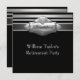 Modelo de convite de festa de aposentadoria cinza e preto elegante. Este lindo convite de festa e evento gravata preta prata, cinza e preto é facilmente personalizado para o seu evento, bastando escolher o botão "Personalize!" para começar a adicionar os detalhes do seu evento, estilo de fonte, tamanho e cor da fonte e texto. Por favor, note que todos os adesivos, cartões e desenhos de convites que você encontrará no Zazzle são gráficos impressos sem joias reais, laços, relevos, rebaixados ou peças ou partes adicionadas.
