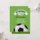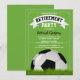 Convites de festa de aposentadoria tema futebol com fundo de campo de futebol verde, bola de futebol e modelo de celebração moderno que é fácil de personalizar.
