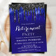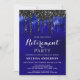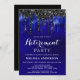 Convide amigos e familiares para a sua festa de aposentadoria com esses convites de festa de aposentadoria com pingentes brilhantes azuis e pretos elegantes e suprimentos para festas. Essa festa de aposentadoria azul e preta também é perfeita para festas de formatura e celebrações de aniversário, basta alterar o evento na guia de personalização. Esse design brilhante azul e preto é perfeito para eventos temáticos da polícia, festa da polícia e aplicação da lei, bem como celebrações corporativas e empresariais. Veja nossa coleção para suprimentos e presentes de festa de aposentadoria correspondentes. DIREITOS AUTORAIS © 2020 Judy Burrows, Black Dog Art - Todos os Direitos Reservados. Convite de Festa de Aposentadoria com Pingentes Brilhantes Azuis e Pretos Elegantes