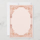 Este convite de festa de aposentadoria rosa e dourado-rosado com um ar vintage, recomendado para uma mulher, tem uma moldura ornamentada (falsa) em folha de ouro rosa com decorações barrocas elegantes sobre um fundo rosa-bege. O nome é escrito em uma caligrafia elegante. Todo o texto pode ser personalizado e tem uma cor rosa semelhante à moldura dourada-rosada.