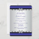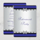 Convite de festa de aposentadoria elegante em azul real e prata com destaque de diamante em um fundo rico azul real e prata. Este lindo convite de festa azul real é facilmente personalizado para o seu evento, basta adicionar os detalhes do evento, estilo de letra, tamanho e cor da fonte e texto. Por favor, observe que todos os adesivos, cartões e desenhos de convite que você encontrará no Zazzle são gráficos impressos sem joias reais, laços, relevos, dourados ou peças ou partes adicionais.