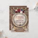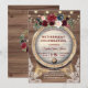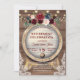 Romântico, design moderno com flores bordô em aquarela, cantos de renda rústica vintage, barril de vinho e luzes de corda; no verso iniciais e buquê floral, tudo sobre fundo de celeiro antigo. Use a ferramenta Personalizar para adicionar suas informações. Para itens correspondentes, visite minha Coleção de Festa de Aposentadoria. Para itens correspondentes, visite minha Coleção de Festa de Aposentadoria.