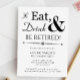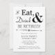 Vai ser uma festa de aposentadoria e tanto, então prepare o cenário com esse convite retrô funk em preto e branco Coma, Beba e Apose!