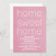 Você se mudou para uma nova casa? Por que não fazer uma festa para celebrar esta maravilhosa ocasião? Você pode com esta simples e elegante tipografia moderna casa doce Convite de festas de lar em rosa. Fácil de personalizar, basta adicionar os detalhes da sua parte nos campos de texto fornecidos. Clique em "Personalizar" para encontrar mais opções de personalização.