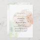 Este convite de festas de água-coloração de ouro confetti é perfeito para um evento rústico. O design apresenta um fundo cor-de-água rosa, verde e branco com abertura de confete com brilho dourado.