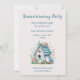 Convite Festa de Aquecimento Familiar de Birdhouse Azul e