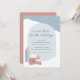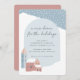 Um convite de festas confortável de Natal, com vibrantes vibrações, com uma cena de Natal nevada. "Uma nova casa para as férias" aparece no topo, com seus detalhes de comemoração de casa embaixo.