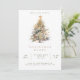 Simples Convite de festas de Natal Aquarela, com ilustração aquática de uma árvore de Natal de estilo vintage, decorada com bolhas e uma estrela.