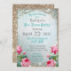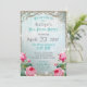 Jardim de rosas rosa encantado e design de placa de convite de festas pré-baile de formatura de borda elvada com efeito brilhante prateado.