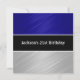 Convites de aniversário. Adequado para todos os aniversários e eventos etários. Estilo simples com cores de Tiras de Cobalto azul e Prata com telas pretas e brancas. O Rsvp está disponível sob solicitação em estilo semelhante.