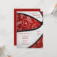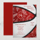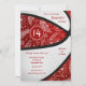Este convite de festa de aniversário de basquetebol fofo apresenta a imagem realista de uma bola de basquetebol estilizada e superdimensionada de forma abstrata, com painéis alternados vermelhos e brancos recoloridos - um padrão de desenho de paisleys, flores e penas em branco cobre os painéis vermelhos da bola de basquetebol - personalize com os detalhes da festa - por katz_d_zynes
