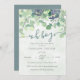 Convite Festa de Bebê Floral Moderno Verde Menino Azul