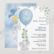 Convite de Chuvada de Bebê "Nossa, um Menino" Elefante Eucalipto Balão Azul | Convite de Menino de Safari Greenery Fofo