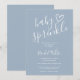 Um convite de festa de bebê minimalista e moderna com um coração desenhado à mão e tipografia sofisticada em um fundo azul turvo. Criado por Thisisnotme©