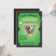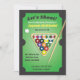Este convite maravilhoso é ótimo para uma festa de aniversário, despedida de solteiro ou qualquer tipo de celebração ou evento. O design é de uma mesa de bilhar com bolas, taco e acessórios.