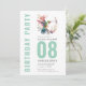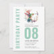 Feliz convite de 8 anos com beija-flores coloridas e convite de aniversário personalizável.