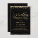 Este convite de festa de aniversário de casamento de 50 anos, bodas de ouro, elegante e festivo, de 8,9 cm x 12,7 cm, apresenta confetes dourados (folha simulada) com as palavras "aniversário de 50 anos de casamento" em uma fonte dourada. O fundo é preto, mas pode ser alterado para qualquer cor de sua escolha. Os detalhes da celebração podem ser facilmente personalizados para o seu evento especial. O verso do cartão apresenta um padrão pontilhado dourado, também com fundo preto que você pode personalizar ao seu gosto. Uma maneira bonita e simples de convidar os convidados para celebrar um aniversário de casamento de bodas de ouro.
