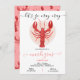 Convites de festa de Boil de Lagostim modernos e funky. Apresenta um grande lagostim pronto para ficar Cray Cray para a festa de Mardi Gras! Cores vermelho, laranja e branco.
