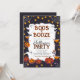 Boos e Booze, convite para a festa do Dia das Bruxas Adultas. Ele apresenta uma borda preta com fantasmas, abóboras e coquetéis. Carretéis e luzes de fadas ao redor das bordas.