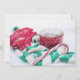 Um convite de festas de natal com uma fotografia de Natal confortável e quente. Uma caneca quente de cacau com marshmallow, uma cana-doce listrada, um cachecol verde e listrado branco e luvas vermelhas. O texto da parte é dentro um quadro semitransparente com uma borda falsa de folha de ouro. Holly acrescenta um toque decorativo. Faz uma foto festiva de feriado caloroso.
