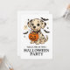 Este convite personalizado fofo para o Halloween apresenta um adorável cachorrinho dalmata com morcegos e um jack de abóbora-lanterna. Personalize a parte frontal e traseira com as informações de sua festa. Divertido para a decoração da festa de férias.