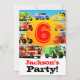 Nove caminhões coloridos cercam um excelente grande número 6! Adicione seus próprios detalhes de idade, nome e festa! Num fundo azul-claro e ouro amarelo, estes caminhões fazem um convite ou anúncio temático muito colorido e divertido. Ao contrário, você pode listar todos os detalhes da sua festa de caminhão personalizada. Perfeito para o caminhão de bombeiros, escavador, caminhão ou trator com 6 anos de idade no aniversário da 6. Um maravilhoso 6 com a ideia de festa de aniversário para seu filho de 6 anos. As crianças adoram caminhões de bombeiros, caminhões grandes, diggers e tratores e velhos de seis anos adoram-nos definitivamente! A construção de crianças modernas e o fornecimento de festas de aniversário para caminhões, acessórios, favoritos para festas e presentes. Todos os designs e ilustrações de caminhão © Paul Stickland