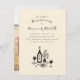 Vinho e bolo desenhados à mão numa mesa a tinta sobre fundo de cor personalizado; texto editável para qualquer evento. Bolo e vinho apresentados