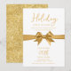 Modelo de convite de Natal / Casa Aberta / Jantar elegante com fita dourada moderna. Impressione seus amigos com este design de convite sofisticado e elegante. Totalmente personalizável!