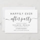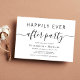 Convite de festa de casamento chic minimal preto e branco para uma celebração pós-fuga ou casamento. "Festa Feliz para Sempre" é escrito em uma mistura de tipografia simples e uma fonte moderna e trendy com floreios.