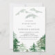 Convite para festa de casamento do tema Woodland. Apresenta árvores de aquarelas e montanhas com tripes padrão e tipografia simples. Os textos são perfeitamente editáveis para todos os efeitos. Personalize adicionando seus próprios detalhes. Este convite à floresta aquarela é perfeito para festa do outono e casamento no inverno.
