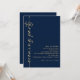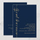 Marinho do Código QR da Caligrafia Azul e Dourados convidados do Partido da Noite de Casamento. Disponível digitalmente e impresso. Adicione seu código QR ao seu site de casamento no verso faz com que esta seja uma opção conveniente para seus convidados para RSVP e veja todos os detalhes sem a necessidade de RSVP separado e cartões de detalhes. O script de na moda é girado para o lado esquerdo, com todos os detalhes elegantemente para a direita com muito espaço vazio para uma sensação contemporânea. Personalize facilmente com seus detalhes. E altere a cor do texto e do plano de fundo, se desejar, através da opção editar mais.