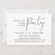 Este é o cartão de convite da festa de casamento elopement, com design minimalista / minimalista de letra preta (festa felizes para sempre).