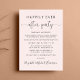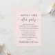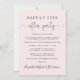 Convite de casamento ou elopamento elegante e sofisticado em rosa claro ou anúncio de casamento privado e recepção ou celebração de festa de casamento. Na frente, "Festa Felizes para Sempre" está escrito em uma mistura de tipografia simples e um script elegante com floreios, e você pode personalizar sua mensagem e convite com mais detalhes e adicionar seus nomes em um script semelhante a uma assinatura. O verso apresenta seus primeiros nomes e datas de casamento e recepção.
