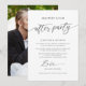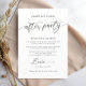 Convite de Celebração de Recepção de Casamento moderno em preto e branco. O design apresenta tipografia ''festa feliz para sempre'' em letras modernas e detalhes de celebração na frente e uma única foto vertical no verso.