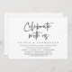 Convite de casamento com tema de letra moderna (Celebre conosco). É perfeito para o seu jantar de casamento íntimo à beira do lago, dança e festa.