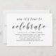 Moderno cartão de convite de casamento íntimo com tema de escrita preta (É hora de celebrar). É perfeito para o seu casamento íntimo / festa de celebração pós-casamento. Adicione seus detalhes na fonte / letra preta correspondente.