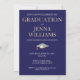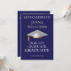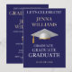 Festa de Celebração de Formatura Convite Dourado e Branco. Reúna amigos e familiares para celebrar um formando especial. Este cartão é projetado em dourado brilhante e branco em um fundo preto com um acento de boina de formatura branca. O texto da frente inclui: o nome do formando e Turma do Ano. O texto do verso inclui: os detalhes da festa em dourado e branco em um fundo preto com acento de boina de formatura branca. Para personalizar, basta inserir os detalhes do seu texto em nosso modelo fácil, substituindo a amostra.