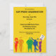 Jogue sua própria festa de celebração de orgulho gay ou outro evento especial. Esses convites estão prontos para serem personalizados com todos os detalhes do seu partido e apresentam uma ilustração de estilo moderno de um grupo de pessoas marchando em uma orgulho gay nas cores do arco-íris da bandeira clássica do orgulho com uma pessoa vermelha, laranja, amarela, verde, azul e roxa, alguns dos quais são sinais de carregando. O gráfico é colocado sobre um fundo de cor dourada. O reverso coordena as listras do arco-íris.