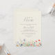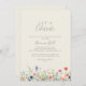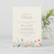 Este convite de festas radiante de celebração de vamos de flor silvestre é perfeito para uma festa de noivado, festa de solteira, aposentadoria, graduação, casamento após festa ou qualquer evento ou festa moderna. O design apresenta flores cor-de-rosa, roxa, esbranquiçada, amarela, marinho azul, verdes e campo selvagem reunidas em buquês florais sem costura e deliciosos, evocando a beleza natural.
