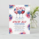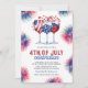 Reúna seus convidados para uma festa inesquecível do 4 de julho! Nossos convites de festa personalizados apresentam copos de vinho com a bandeira dos EUA, fogos de artifício em aquarela deslumbrantes e um modelo moderno do Dia da Independência para você personalizar. Celebre o espírito americano com familiares e amigos com estilo neste 4 de julho!