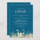 Este convite de festas de celebração de marinho de flor silvestre boho é perfeito para uma festa de noivado rústica, festa de solteira, aposentadoria, graduação, casamento após festa ou qualquer evento ou festa. O design apresenta flores silvestres cor-de-água rosa, pinceladas, amarelas e brancas dispostas em buquês elegantes.