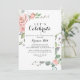 Este verão o convite de festas de celebração de vamos florais de brisa é perfeito para uma festa de noivado rústica, festa de solteira, aposentadoria, graduação, casamento após festa ou qualquer evento ou festa. O design apresenta flores rosa de cor-de-água rosa, pinceladas, púrpura pintada manualmente, com folhagem verde, agrupadas em uma estrutura geométrica.